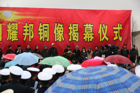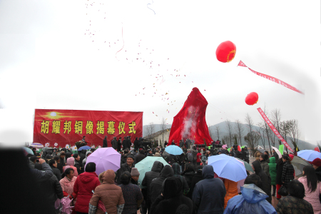 來自全國(guó)墾荒隊(duì)員、普通群眾及美術(shù)界人士自發(fā)冒雨參加胡耀邦巨像揭幕式