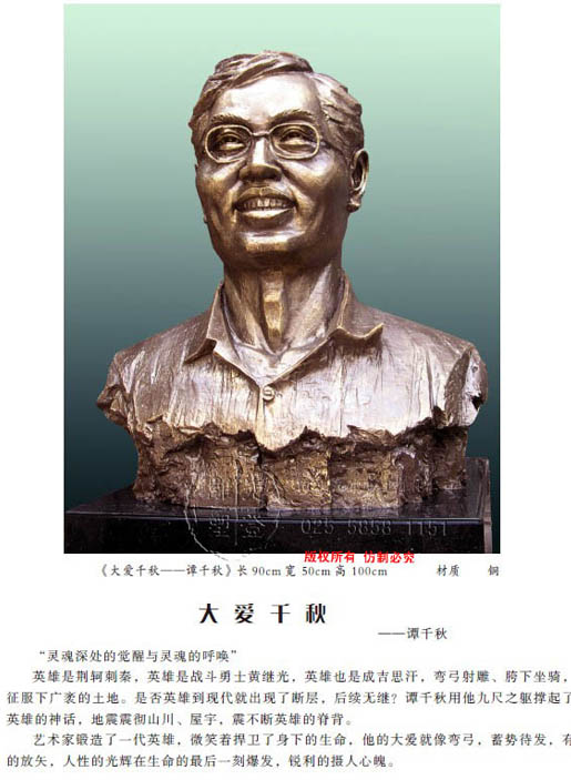 東郭教授為尊敬的譚老師作的雕塑《大愛千秋---譚千秋》肖像雕塑